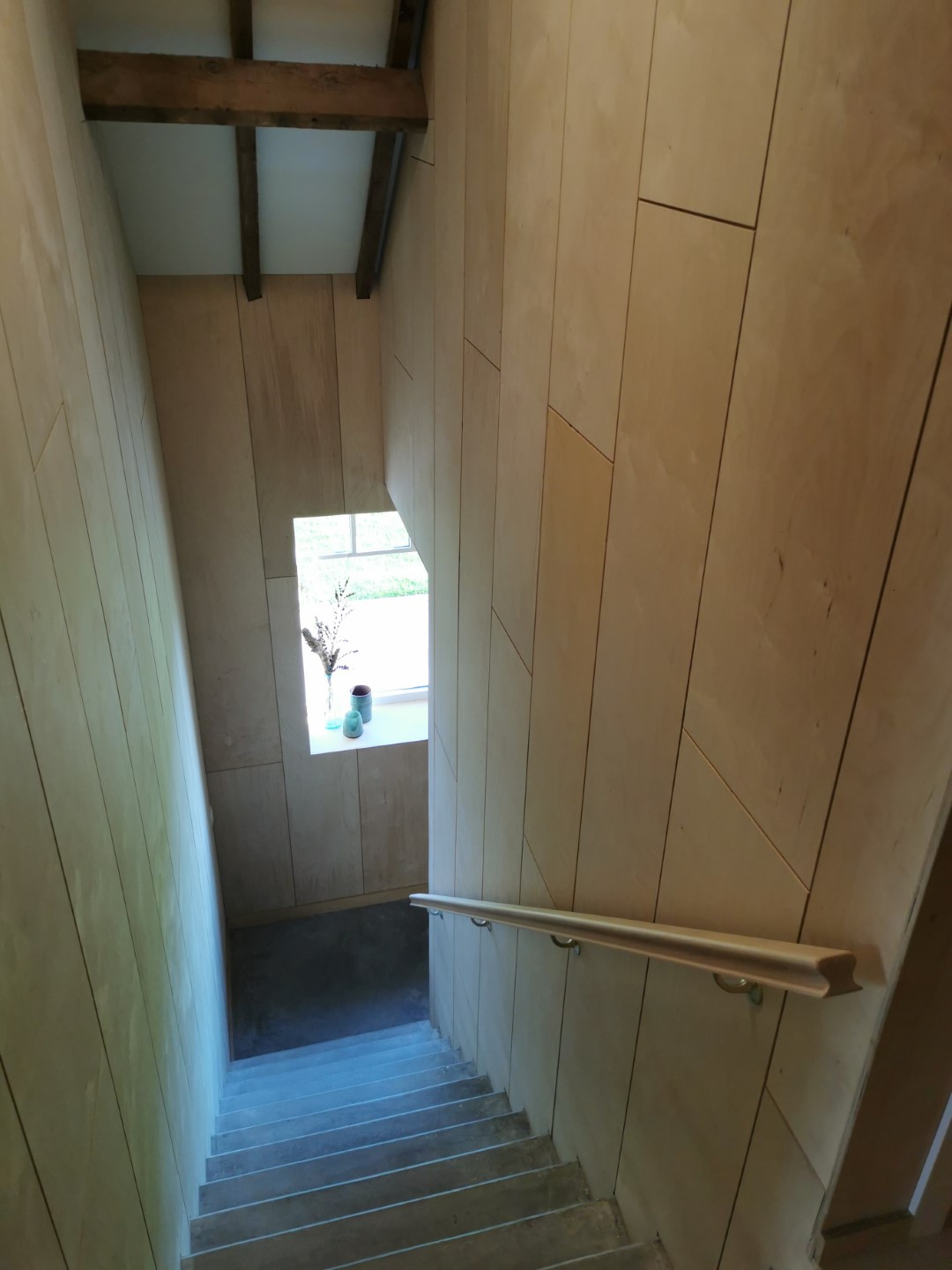 - Alle vaat- en handdoeken beneden bij de trap deponeren