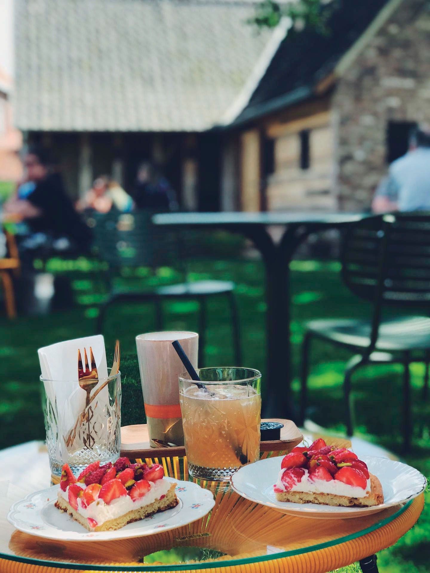 Assortiment aan koffiekoeken, pistolets en brood - hoeveboter 3 soorten charcuterie en 3 soorten kaas zalm - quiche - salade - huisgemaakte granola - verse choco en confituur yoghurt van de hoeve komeerepannenkoekjes met ahornsiroop - appelsap van de hoeve - zoetigheid van de week.